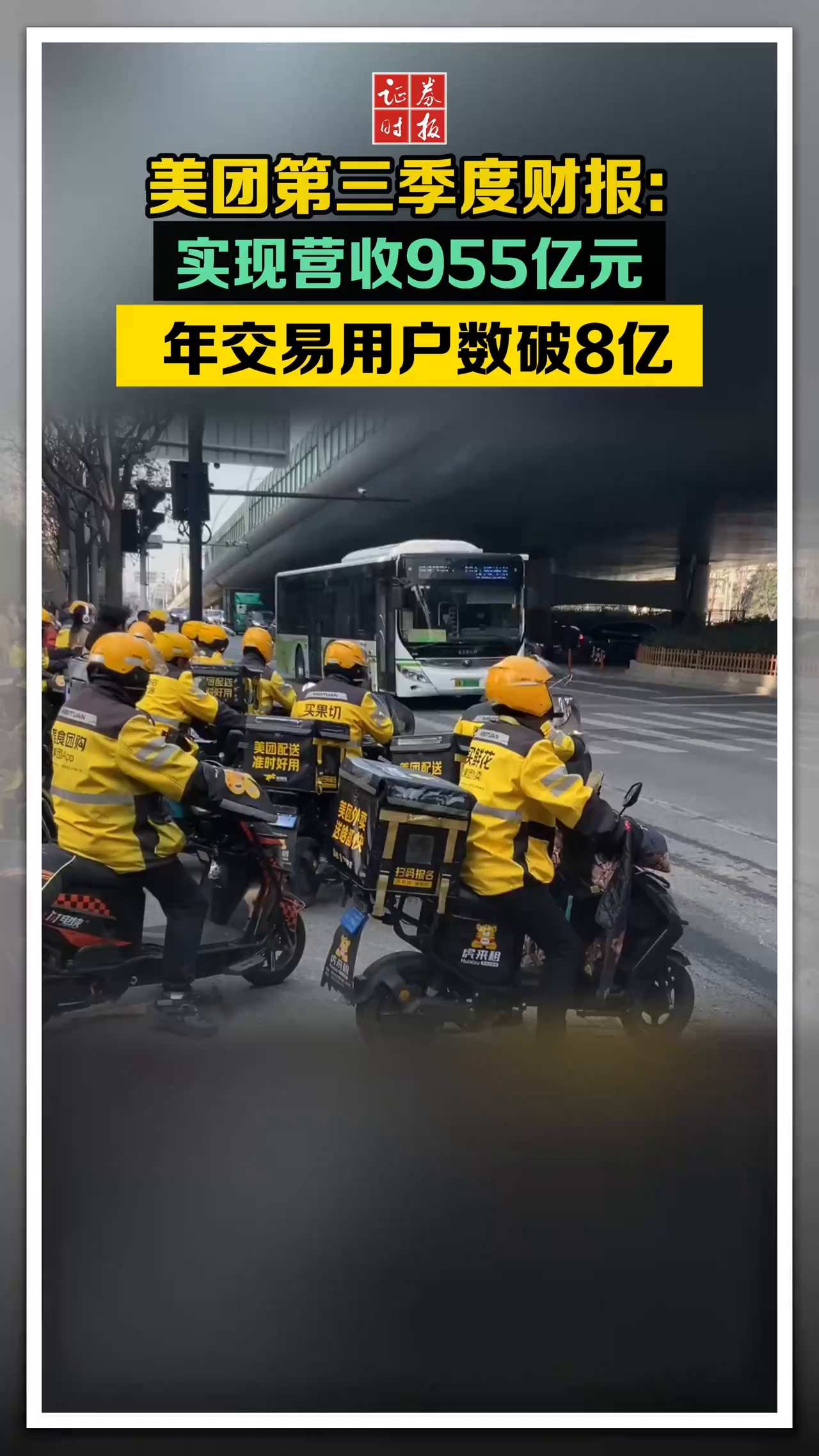 美团第三季度财报:实现营收955亿元,年交易用户数破8亿