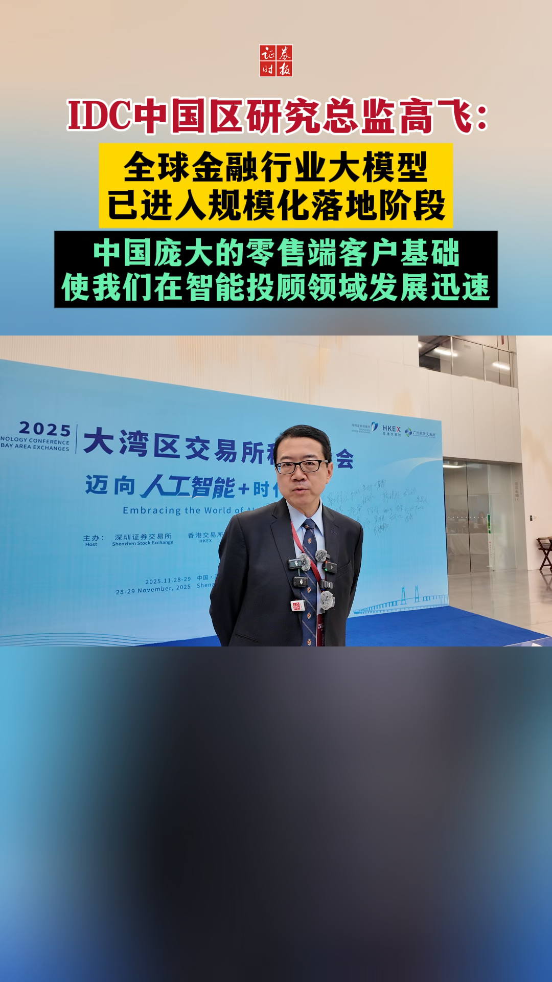 IDC中国区研究总监高飞:全球金融行业大模型已进入规模化落地阶段 中国庞大的零售端客户基础使我们在智能投顾领域发展迅速