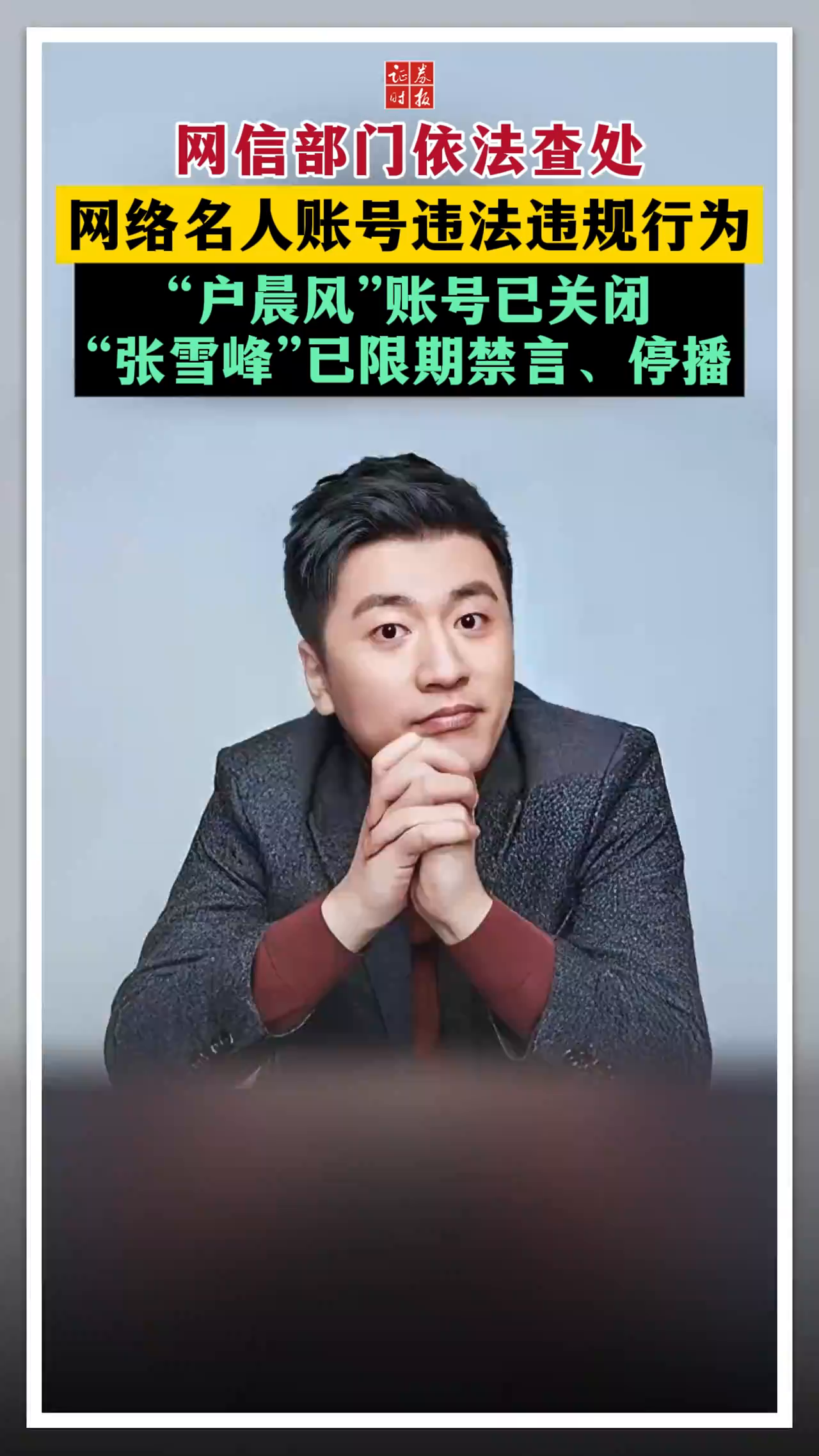网信部门依法查处网络名人账号违法违规行为 “户晨风”账号已关闭“张雪峰”已限期禁言、停播