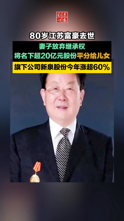 80岁江苏富豪去世,妻子放弃继承权,将名下超20亿元股份平分给儿女