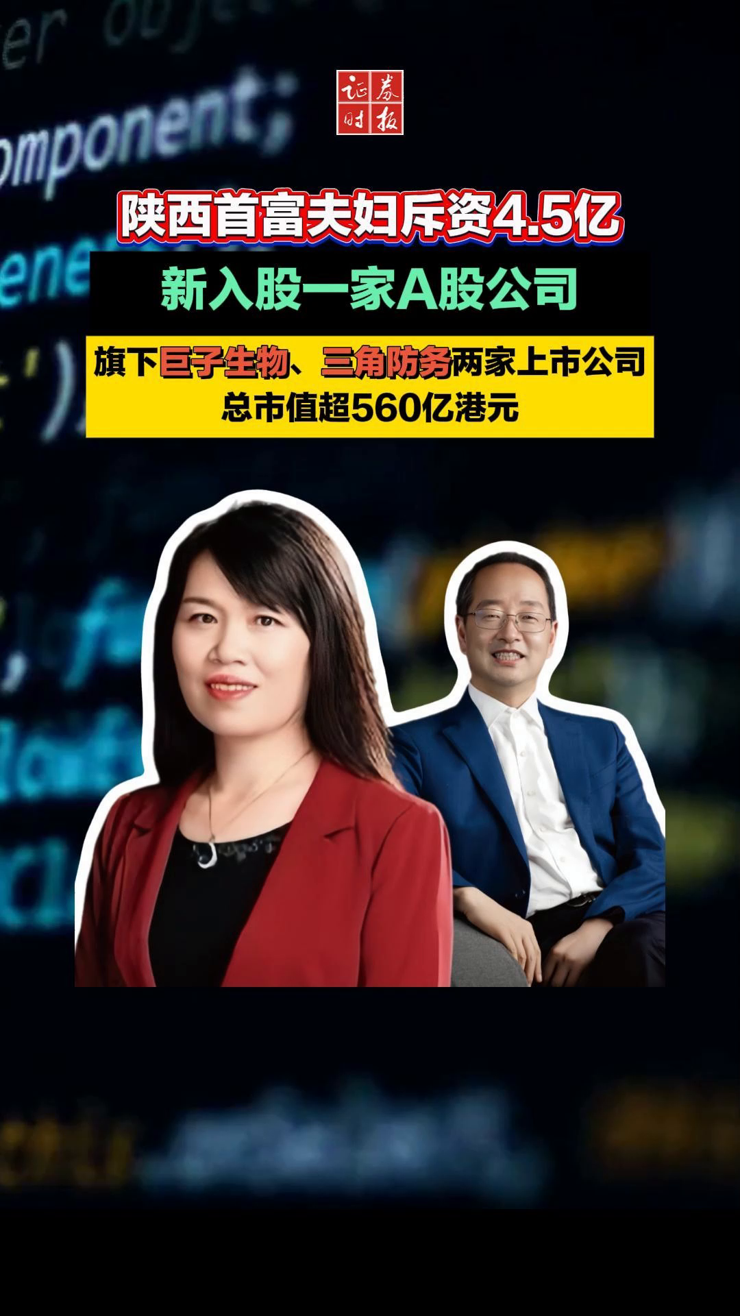 陕西首富夫妇豪掷4.5亿,名下再添一家A股公司