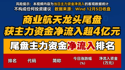 商业航天龙头尾盘获主力资金净流入超4亿元