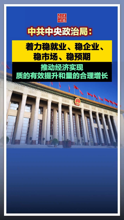 中共中央政治局:着力稳就业、稳企业、稳市场、稳预期,推动经济实现质的有效提升和量的合理增长
