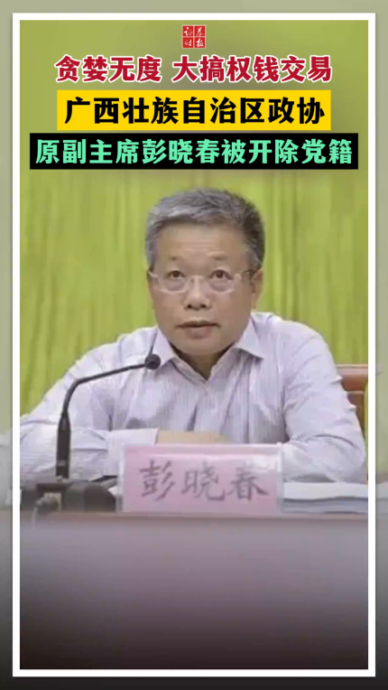 贪婪无度 大搞权钱交易 广西壮族自治区政协原副主席彭晓春被开除党籍