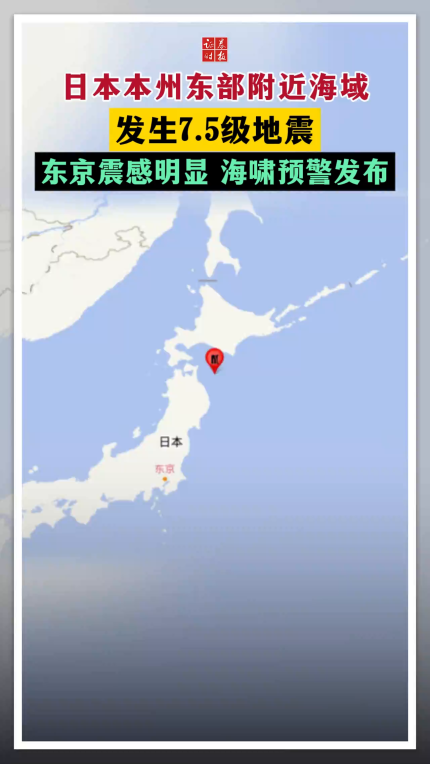 日本本州东部附近海域发生7.5级地震 东京震感明显 海啸预警发布