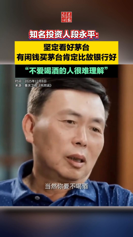 知名投资人段永平:坚定看好茅台,有闲钱买茅台肯定比放银行好
