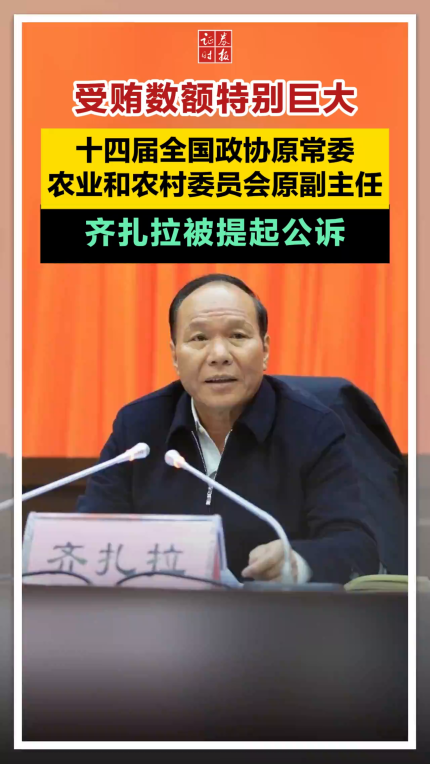 受贿数额特别巨大 十四届全国政协原常委、农业和农村委员会原副主任齐扎拉被提起公诉