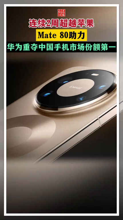连续2周超越苹果 Mate 80助力华为重夺中国手机市场份额第一