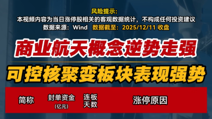 #涨停板 #商业航天 #可控核聚变 #人形机器人