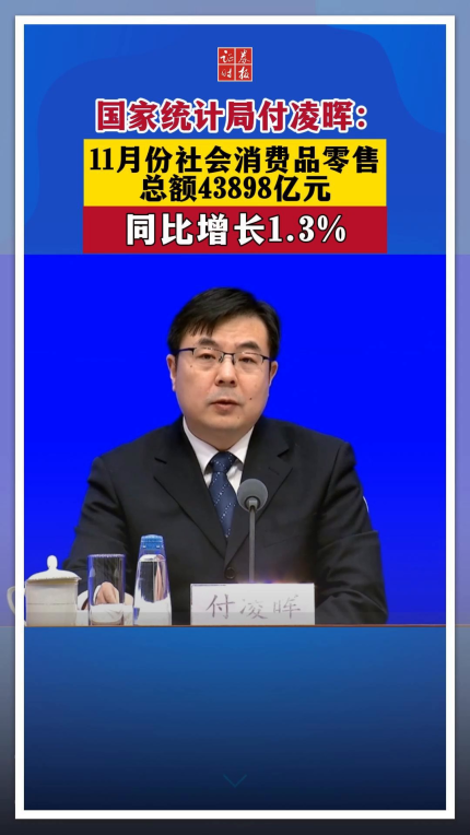 国家统计局付凌晖:11月份社会消费品零售总额43898亿元,同比增长1.3%