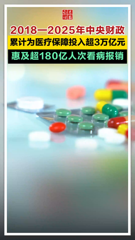 2018—2025年中央财政累计为医疗保障投入超3万亿元,惠及超180亿人次看病报销