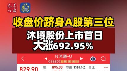 沐曦股份上市首日大涨692.95%,最新收盘价跻身A股第三!#沐曦股份 #IPO #新股上市 #新股 #收盘股价