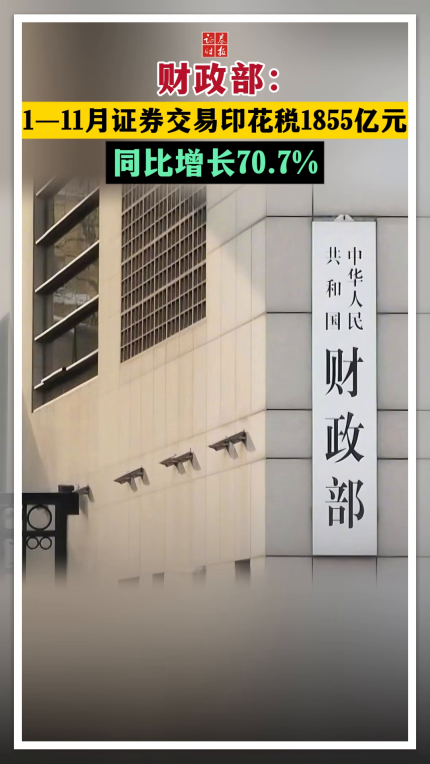 财政部:1—11月证券交易印花税1855亿元 同比增长70.7%