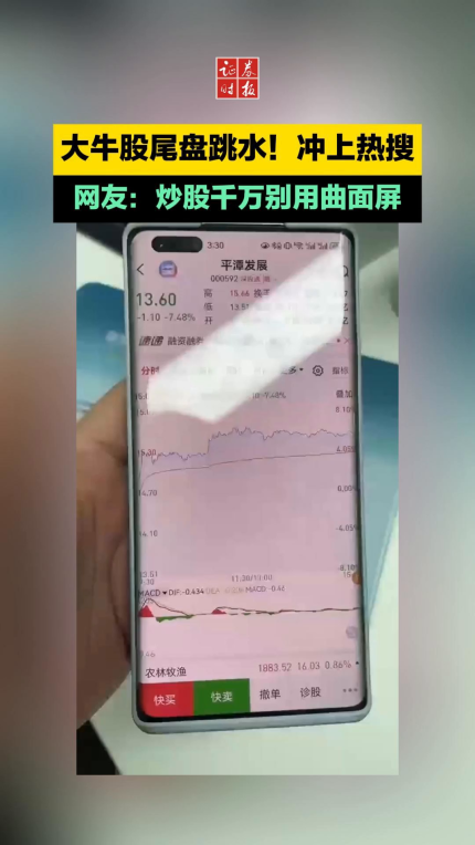 大牛股尾盘跳水!冲上热搜,网友:炒股千万别用曲面屏