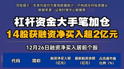 杠杆资金大手笔加仓 14股获融资净买入超2亿元