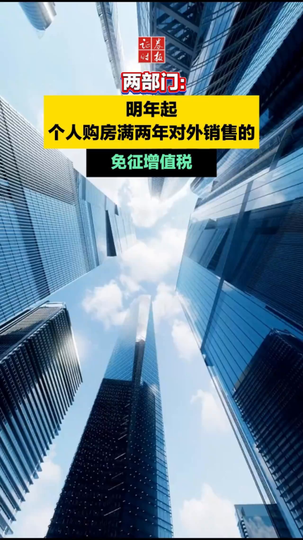 两部门:明年起个人购房满两年对外销售的,免征增值税
