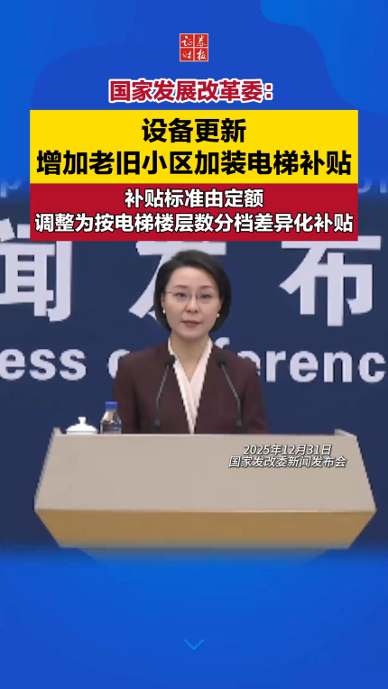国家发展改革委:设备更新增加老旧小区加装电梯补贴,补贴标准由定额调整为按电梯楼层数分档差异化补贴