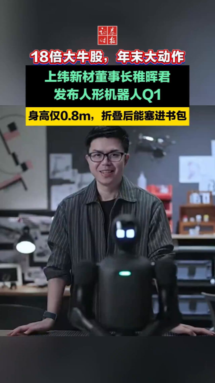 上纬新材董事长稚晖君发布人形机器人Q1,身高仅0.8m,折叠后能塞进书包