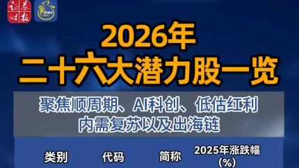 2026年二十六大潜力股出炉,聚焦AI科创、高端制造出海、顺周期、内需复苏等板块!#潜力股 #金股 #AI #科创 #A股
