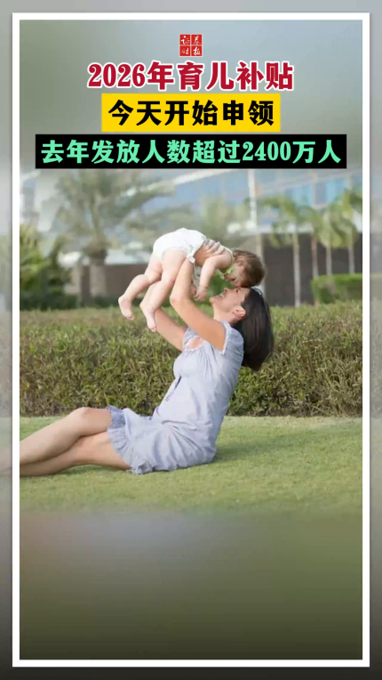 2026年育儿补贴今天开始申领 去年发放人数超过2400万人