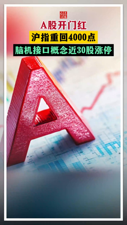 A股开门红 沪指重回4000点 脑机接口概念近30股涨停