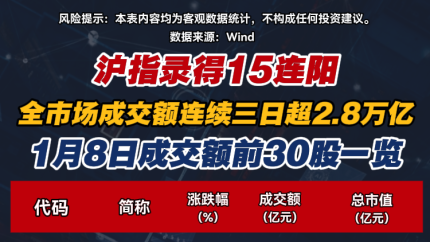 沪指录得15连阳 全市场成交额连续三日超2.8万亿