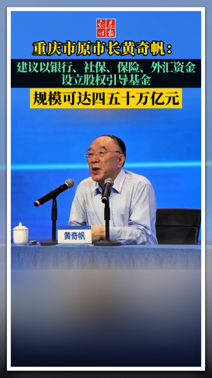 重庆市原市长黄奇帆:建议以银行、社保、保险、外汇资金设立股权引导基金 规模可达四五十万亿元