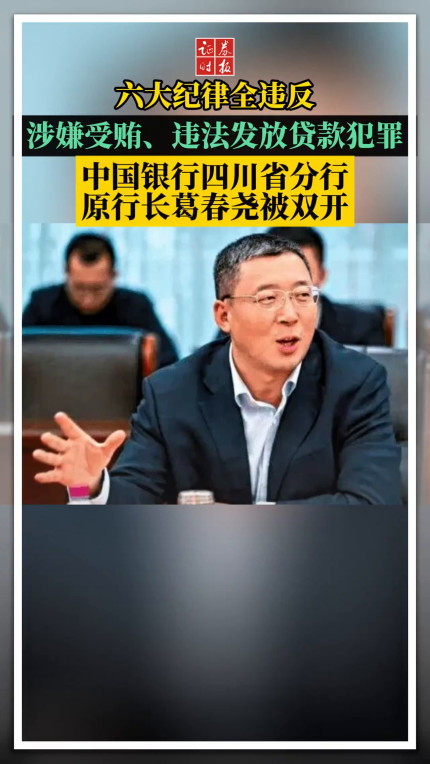 六大纪律全违反!涉嫌受贿、违法发放贷款犯罪,中国银行四川省分行原行长葛春尧被双开