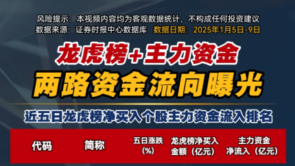 龙虎榜+主力资金近五日流向曝光!(1月5日~1月9日)