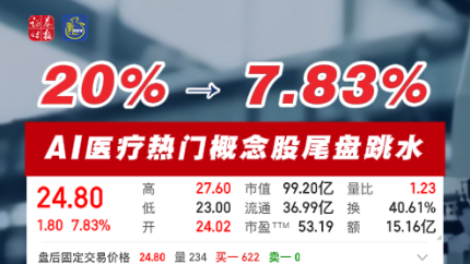 20% → 7.83%!AI医疗热门概念股尾盘跳水