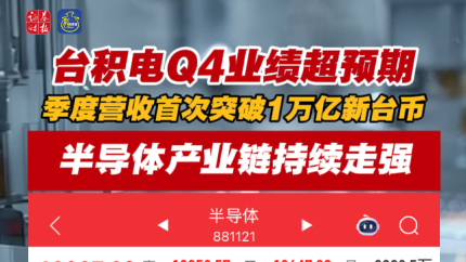台积电Q4业绩超预期 季度营收首次突破1万亿新台币 半导体产业链持续走强