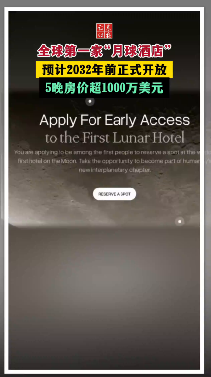 全球第一家“月球酒店” 预计2032年前正式开放 5晚房价超1000万美元