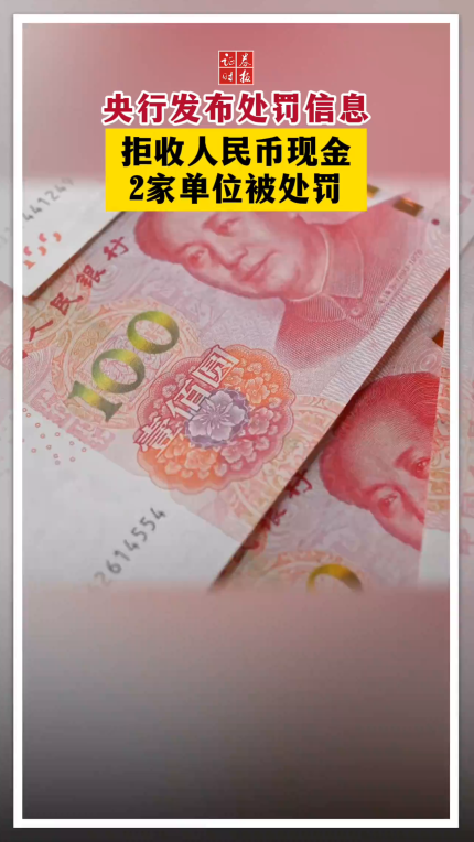 央行发布处罚信息 拒收人民币现金 2家单位被处罚