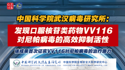 中国科学院武汉病毒研究所:发现口服核苷类药物VV116对尼帕病毒的高效抑制活性