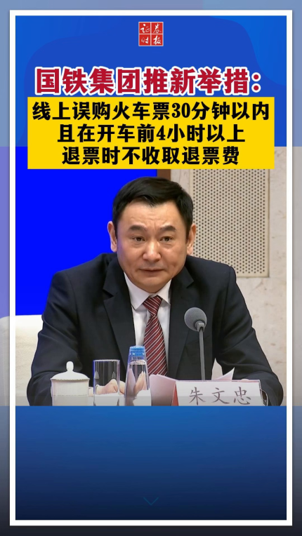 国铁集团推新举措:线上误购火车票30分钟以内 且在开车前4小时以上 退票时不收取退票费