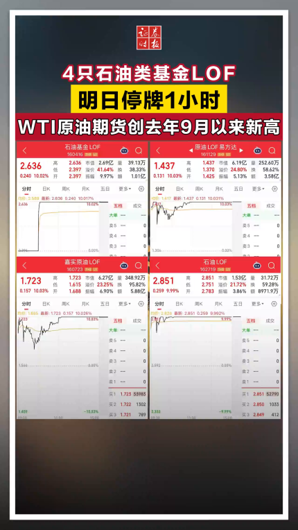 4只石油类基金LOF明日停牌1小时,WTI原油期货创去年9月以来新高