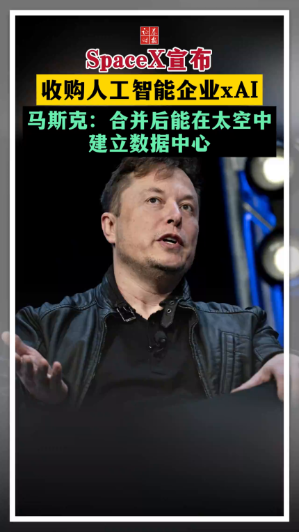 SpaceX宣布收购人工智能企业xAI 马斯克:合并后能在太空中建立数据中心