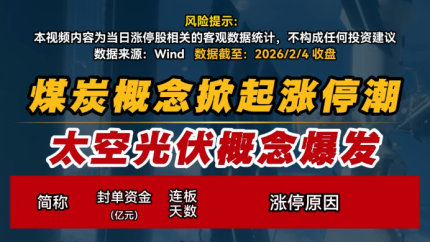 煤炭概念掀起涨停潮 太空光伏概念爆发