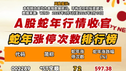 A股蛇年行情收官 蛇年涨停次数排行榜