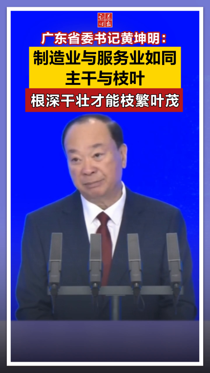 广东省委书记黄坤明:制造业与服务业如同主干与枝叶,根深干壮才能枝繁叶茂