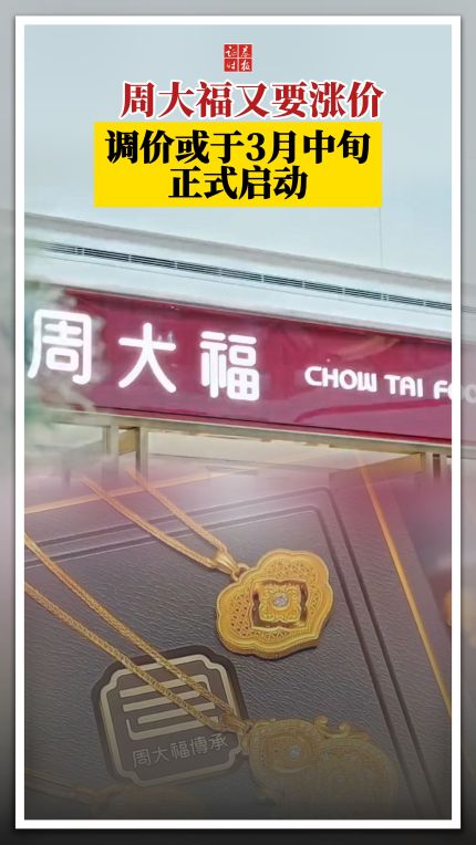 周大福又要涨价,调价或于3月中旬正式启动