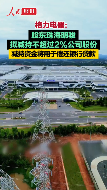 格力电器:股东珠海明骏拟减持不超过2%公司股份 减持资金将用于偿还银行贷款