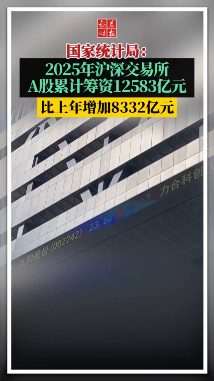 国家统计局:2025年沪深交易所A股累计筹资12583亿元,比上年增加8332亿元