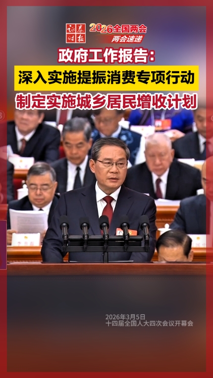 政府工作报告:深入实施提振消费专项行动,制定实施城乡居民增收计划