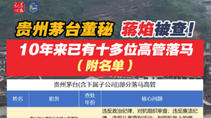 贵州茅台董秘蒋焰被查!10年来已有十多位高管落马(附名单)