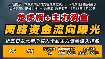 龙虎榜+主力资金两路资金流向曝光(3月16日-20日)