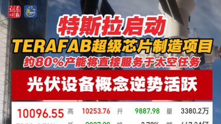 特斯拉启动TERAFAB超级芯片制造项目 光伏设备概念逆势活跃