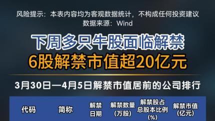 下周多只牛股将面临解禁,6股解禁市值超20亿元!#解禁 #解禁限售股 #A股 #A股解禁 #解禁股