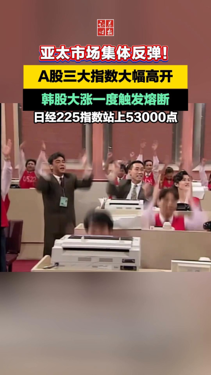 亚太市场集体反弹!A股三大指数大幅高开,韩股大涨一度触发熔断,日经225指数站上53000点