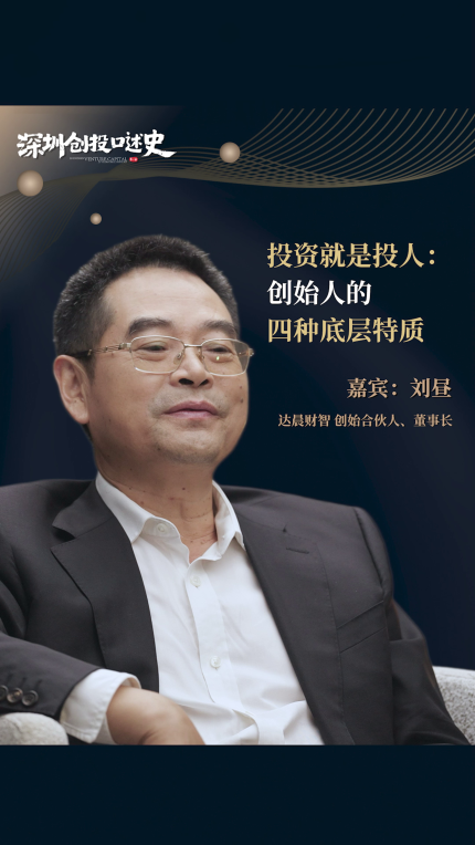 【深圳创投25年口述史】达晨财智董事长刘昼:投资就是投人,创始人的四种底层特质
